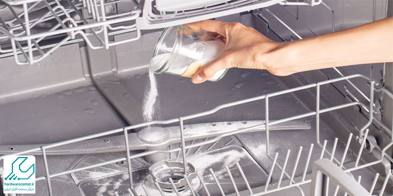 بعد از پایان شستشو با سرکه، به اندازه یک مشت جوش شیرین را به کف ماشین ظرفشپاسویی بریزید. حالا ماشین ظرفشویی را در بالاترین دمای آب بگذارید و زمان کار ظرفشویی را در کوتاه ترین مدت زمان تنظیم کنید. جوش شیرین می تواند لکه هایی را که روی دستگاه باقی مانده از بین ببرد.